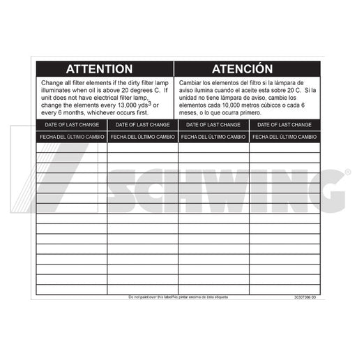 SCHWINGSCHWING - Decal - Adhesive, Change Filter Element – Part #30307386 Decal - Adhesive, Change Filter Element | Weight: 2 lbs | Brand: SCHWING. This g...