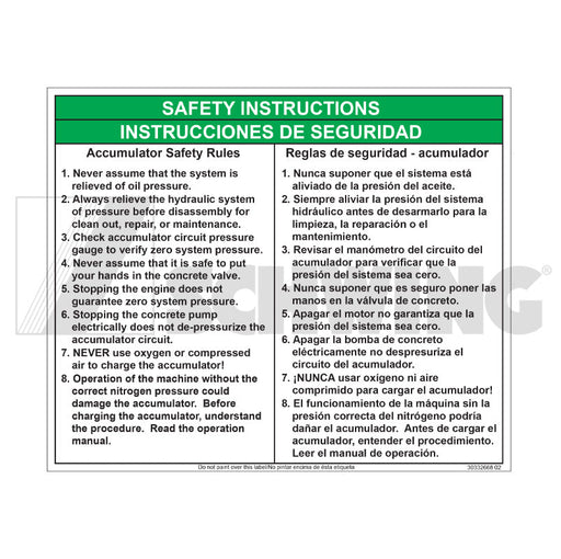 SCHWINGSCHWING - Decal - Accumulator Safety Rule – Part #30332668 Decal - Accumulator Safety Rule | Weight: 2 lbs | Brand: SCHWING. This genuine Schwing r...