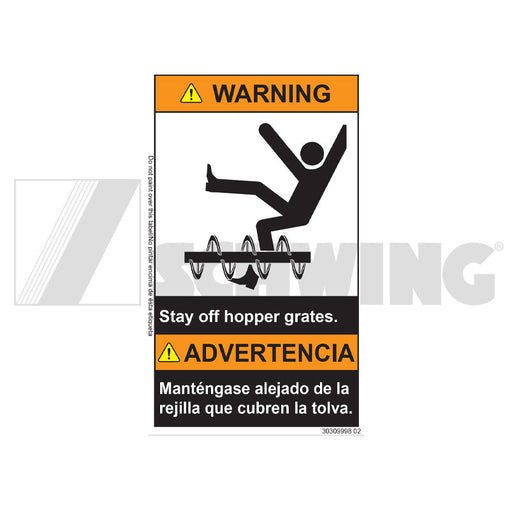SCHWING - Decal - Warning Do Not Stand On Grate – Part #30309998 Decal - Warning Do Not Stand On Grate | Weight: 2 lbs | Brand: SCHWING. This genui...