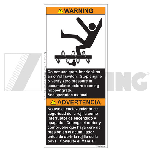 SCHWING - Decal - Warning-Do Not Use Interlock – Part #30381848 Decal - Warning-Do Not Use Interlock | Weight: 1 lbs | Dimensions: 185 X 83 X 1 MM ...