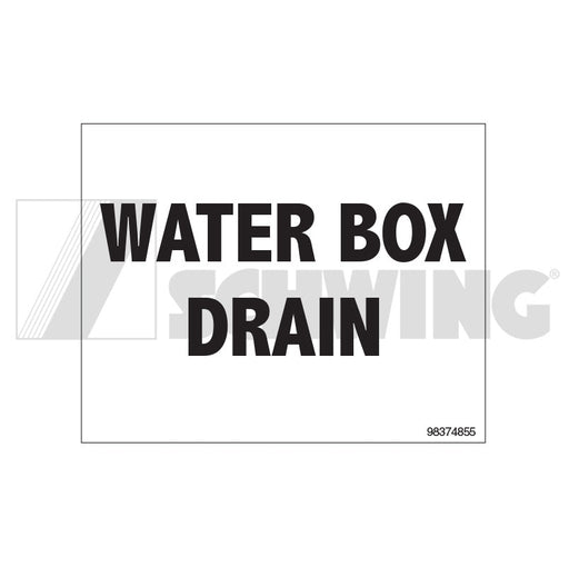 SCHWING - Decal Water Box Drain – Part #98374855 Decal Water Box Drain | Weight: 1 lbs | Brand: SCHWING. This genuine Schwing replacement component...